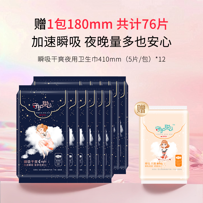 夜用卫生巾410mm*12包 送1包180mm 共计76片【梦幻礼遇】